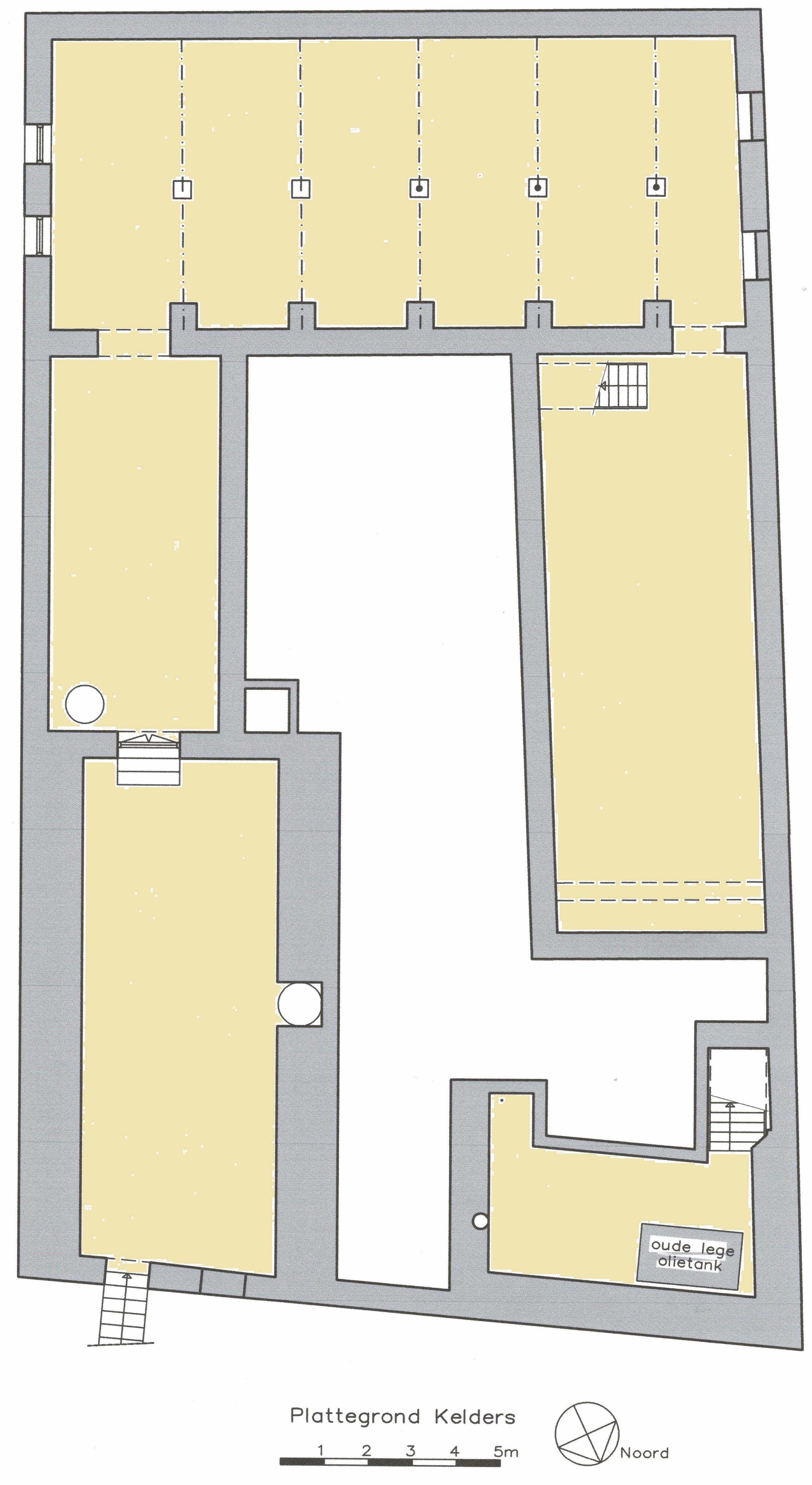 Onder de gehele woning zijn kelders aanwezig van 3 - 4,5 m hoog. De oudste kelder vertoont elementen die gelijk zijn aan de kerk van Aubenton uit de 14e eeuw. Vanuit deze kelder is een gemetselde trap naar 10,5 meter onder het straatniveau met aansluitende een uitgehouwen gangenstelsel dat reikt tot onder de woningen aan de overkant van de straat.